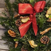 Includes a hot drink or a warming glass of mulled wine, a festive mince pie (because it wouldn’t be Christmas without one!), and all the materials and equipment you’ll need. We’ll be using an eco-friendly straw-based ring and natural string — kind to the planet and beautiful on your door.